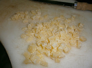 6. Cook until pasta is perfectly al dente and only when it’s ready put the little pieces of matured caciocavallo cheese (pic on the right) and some more extra virgin oil of olive in the pot.